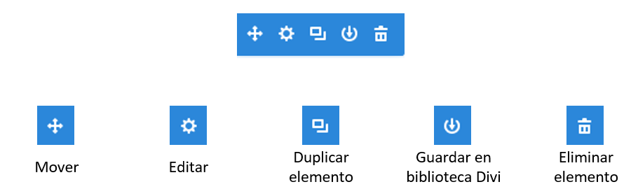 • Backend: Vemos los componentes de manera gráfica. En este caso seleccionamos el elemento a modificar haciendo clic sobre el menú tipo hamburguesa de cada elemento.