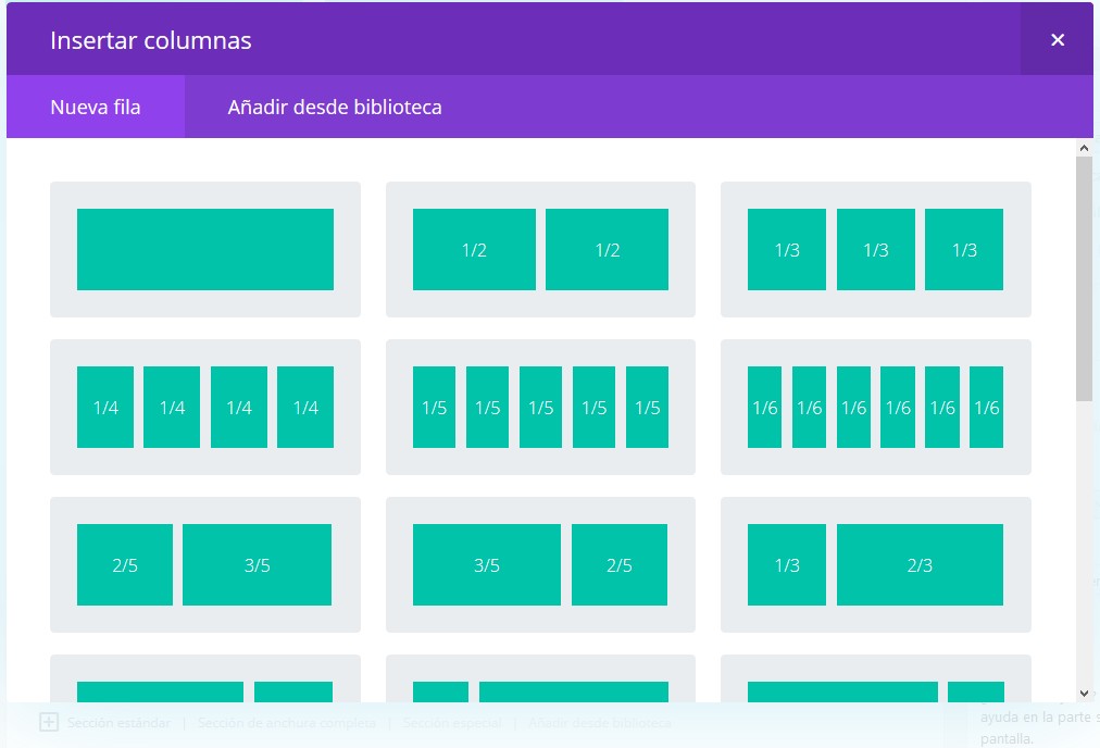 2. Seleccionamos el número de columnas a utilizar y el diseño de las mismas