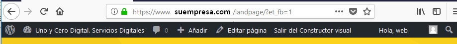 • Frontend: Vemos la página como se verá realmente en un navegador, permitiendo editar directamente sobre cada elemento o entrando en las opciones de configuración de cada sección. Para habilitar esta forma de trabajar, se hace clic sobre el botón USAR CONSTRUCTOR VISUAL